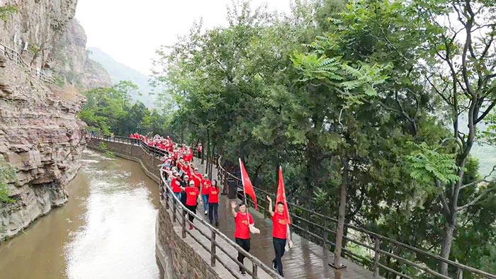 4月29日清晨,迎著山間的朝露與鳥鳴,全體學(xué)員前往太行山大峽谷,開展了一場別開生面的觀摩教學(xué)。行走在巍巍太行山間,在桃花谷、太行天路中,感受“美太行”的美麗鄉(xiāng)村建設(shè)的新時代畫卷,探訪山區(qū)人民自力更生、艱苦創(chuàng)業(yè)的致富精神。